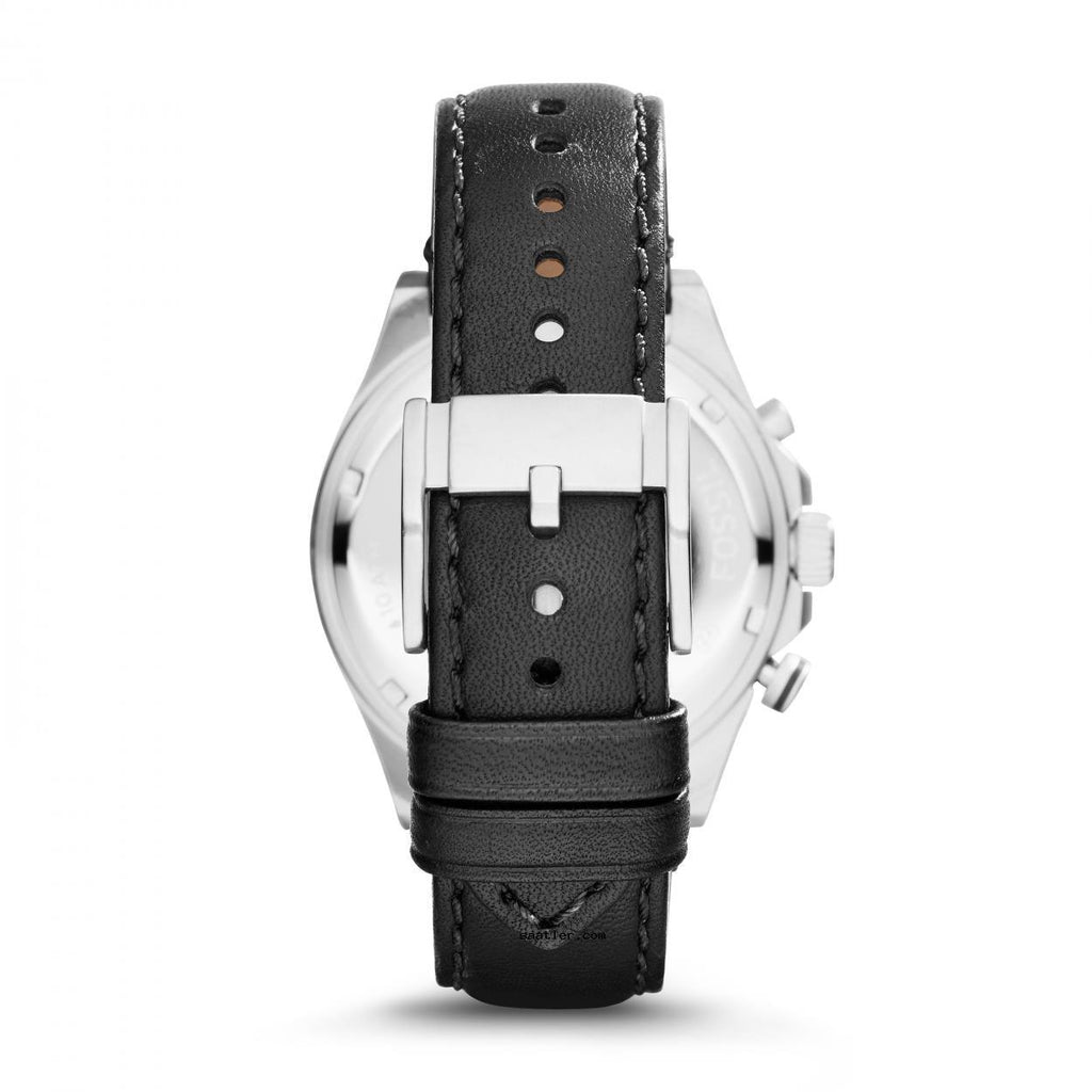 Fossil Wakefield Chronograph Blue Dial Black Leather Strap Watch for Women - CH2945