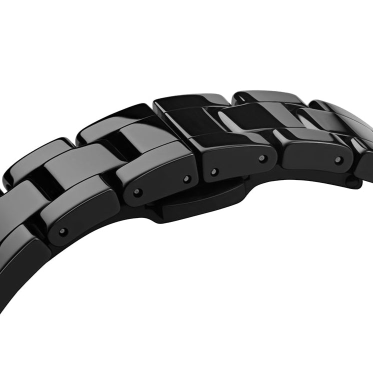 The high class of the timepiece is emphasized by a comfortable and durable butterfly clasp with additional protection. Unfastening the watch is possible only after intentionally releasing the lock. The ceramic bracelet, characterized by incredible smoothness and very desirable lightness, adds chic. However, a designer finish is not everything! Thanks to it, the model offers us high resistance to mechanical and chemical damage.
