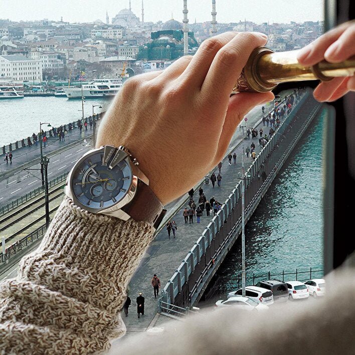 Diesel Mega Chief Chronograph Blue Dial Brown Leather Strap Watch For Men - DZ4281