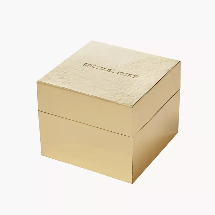 The Michael Kors Tibby Multifunction White Dial Gold Steel Strap Watch for Women - MK6969 is a stylish and functional timepiece. The gold steel strap and white dial exude elegance, while the various multifunction features provide practicality. With this watch, you'll always make a statement while staying on top of your schedule.