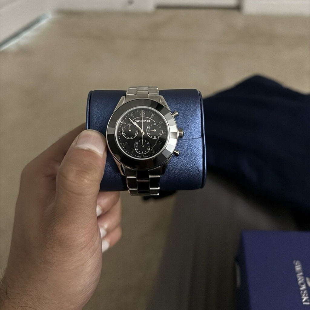 Swarovski Octea Lux Sport Chronograph Black Dial Silver Steel Strap Watch for Women - 5610520