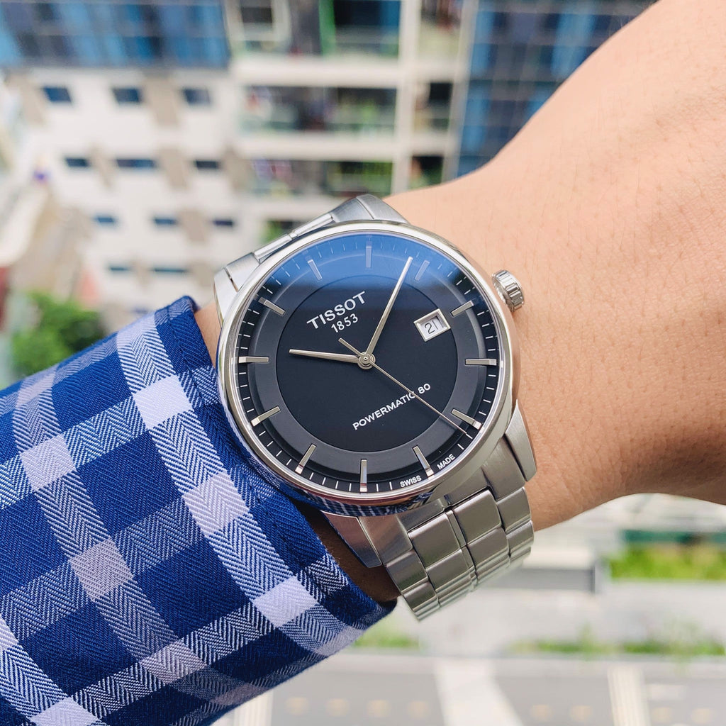 Tissot Luxury Powermatic 80 Black Dial Silver Steel Strap Watch for Men - T086.407.11.201.02
